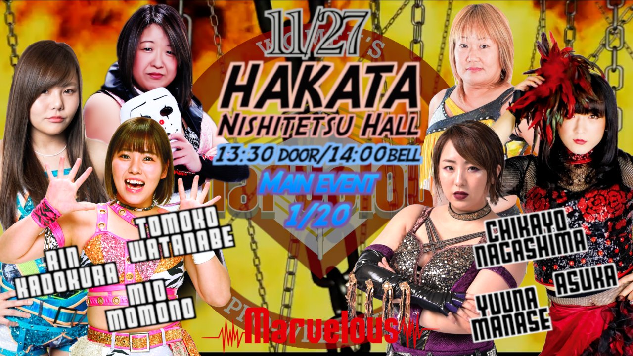 It’s the last one before the biggie, as Marvelous popped down to Hakata for their final show before the one-night AAAW Title tournament. Currently, it doesn’t feel like there is a clear favourite for the belt (although I might be influenced by my belief that Mio shouldn’t win it right now), so while I’m sure this show was a fun trip, it was also the last chance for people to pick up some momentum. Let’s see what went down.